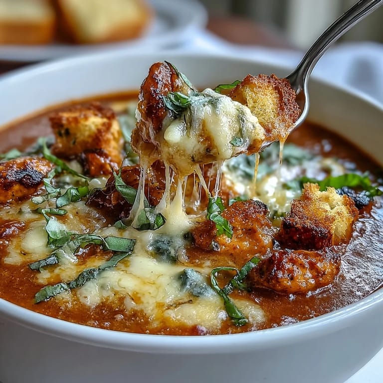 This soup is best served immediately while the croutons are still crispy and the cheese is still melting, but it keeps beautifully in the refrigerator for three days if stored in an airtight container. When reheating, do it gently over medium heat with a splash of broth to restore the consistency, and add your cheese and croutons fresh so they don't get soggy from sitting.