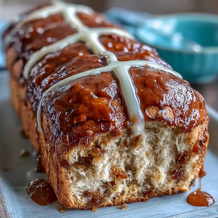 I'll never forget my teenage daughter sitting at the kitchen counter while I shaped the dough, asking if she could pipe the crosses herself. Her lines were wobbly, some buns got double crosses, a few got none at all, but when we pulled them from the oven and she brushed that glossy citrus glaze across them, her face lit up like she'd just created edible art. We sat together in the quiet early morning, steam rising from a mug of tea, splitting a warm bun and talking about nothing important—those moments when baking becomes less about technique and more about connection.