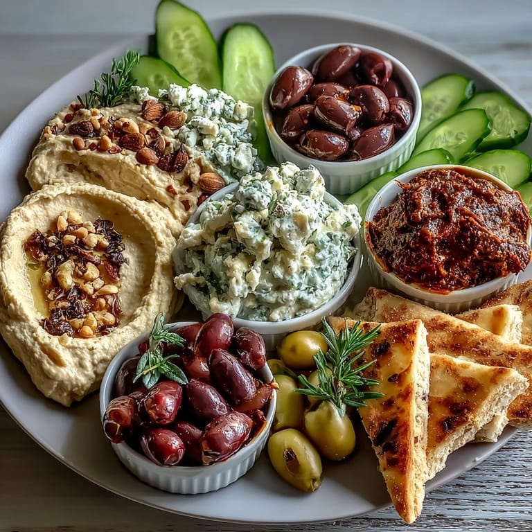 Pin It Last summer, I was tasked with hosting a brunch for my partner's work friends, and I was terrified of the usual boring cheese board route. That's when I remembered a meal I'd had at a taverna in Athens years ago, where a single platter held more personality than an entire restaurant menu. I spent the afternoon roasting eggplants, blending chickpeas, and arranging vegetables like I was painting something that mattered. By the time everyone arrived, the board looked so inviting that people actually lingered around it for an hour, trying different combinations and having real conversations.