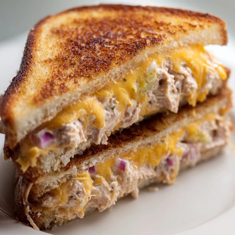 Pin It My neighbor knocked on the door one afternoon holding a jar of homemade hot sauce and a confession: she'd ruined her lunch trying to use it. I invited her in, opened a can of tuna, and we threw together what became this spicy tuna melt. The smell of toasted sourdough and melting cheddar filled the kitchen while we laughed about kitchen disasters. That sandwich turned into our go-to whenever one of us needed a quick pick-me-up.