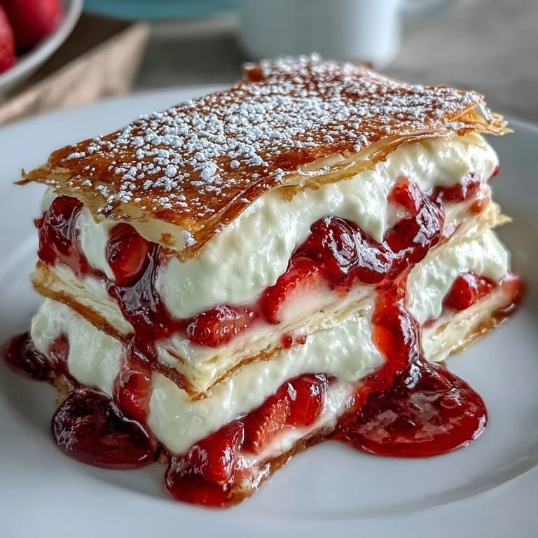 Pin It My sister texted me three weeks before her brunch asking if I could bring dessert, and somehow I'd already decided it would be this strawberry crepe cake—the kind that looks like you spent all morning in a French patisserie but actually comes together with surprising grace. The first time I made it, I was stressed about the crepes, convinced they'd tear or stick, but something shifted when I heard that gentle sizzle and watched the batter spread into paper-thin circles. Now whenever spring arrives and strawberries show up at the market, I think about that afternoon, how my hands finally knew what they were doing, and how a simple stack of thin pancakes could become something that stops people mid-conversation.